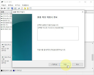 ▲ 다시 팝업 메뉴 를 열어보니 이번엔 [볼륨 확장] 메뉴가 활성화된 것을 확인 할 수 있습니다. 클릭하여마법사를실행하세요.